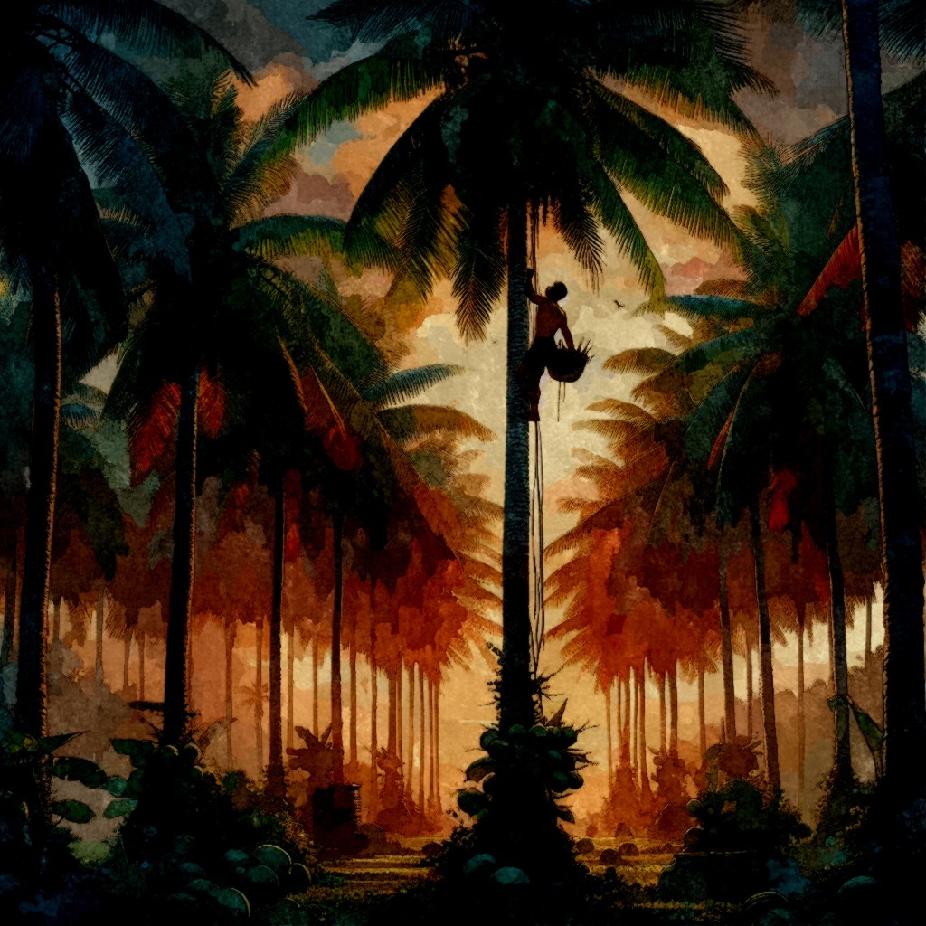Coconut palms are planted with adequate spacing ( 8m between palms) in well prepared soil in the wet season in an area with adequate rainfall (at least 60 inches of rain annually). The palms are provided adequate nutrition to provide regular high quality production. It is possible to plant 150 to 250 palms per hectare on a suitable site.